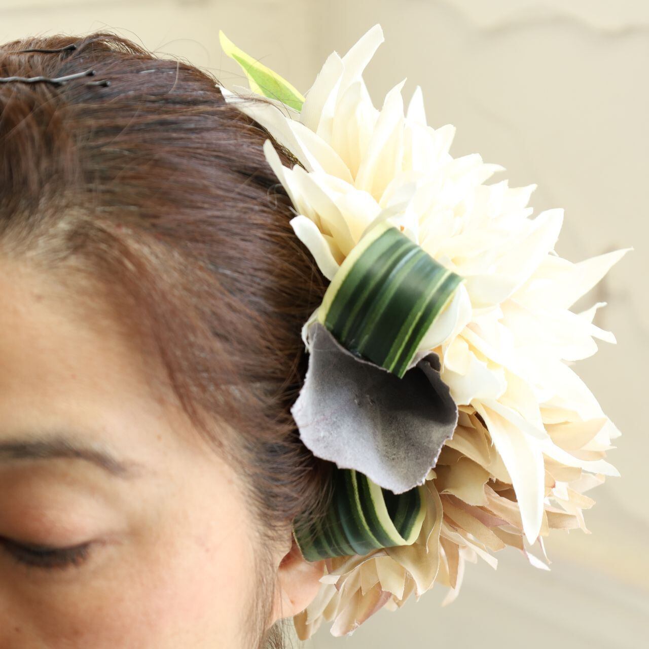 シニョンの根元に差し込むだけなので、簡単にしっかりと付きます。