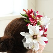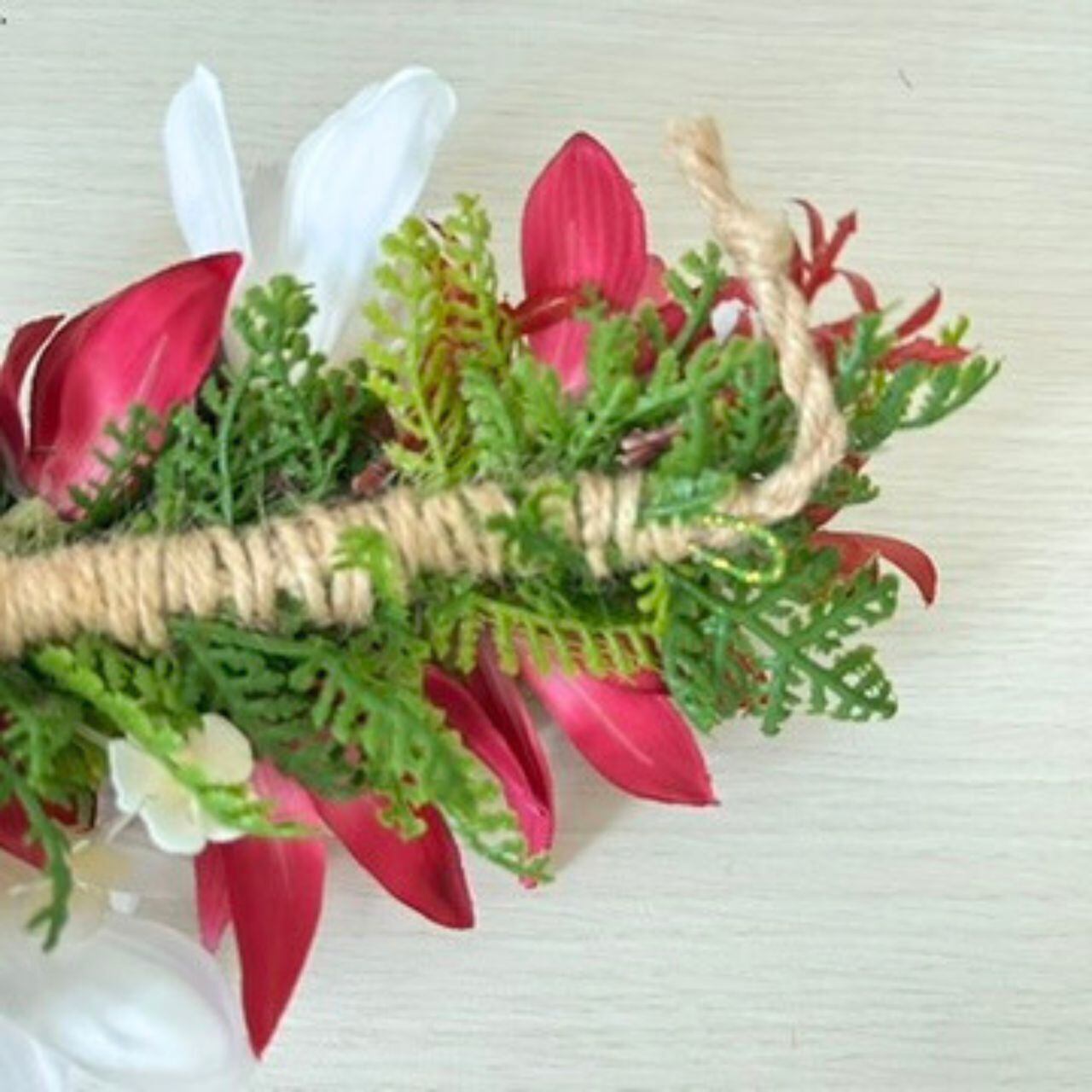 こちらの髪飾りは、レイのように編んで作ってあります。