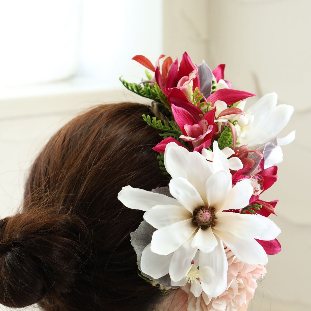 白いマグノリアとシンビジュームをたっぷりと使い、