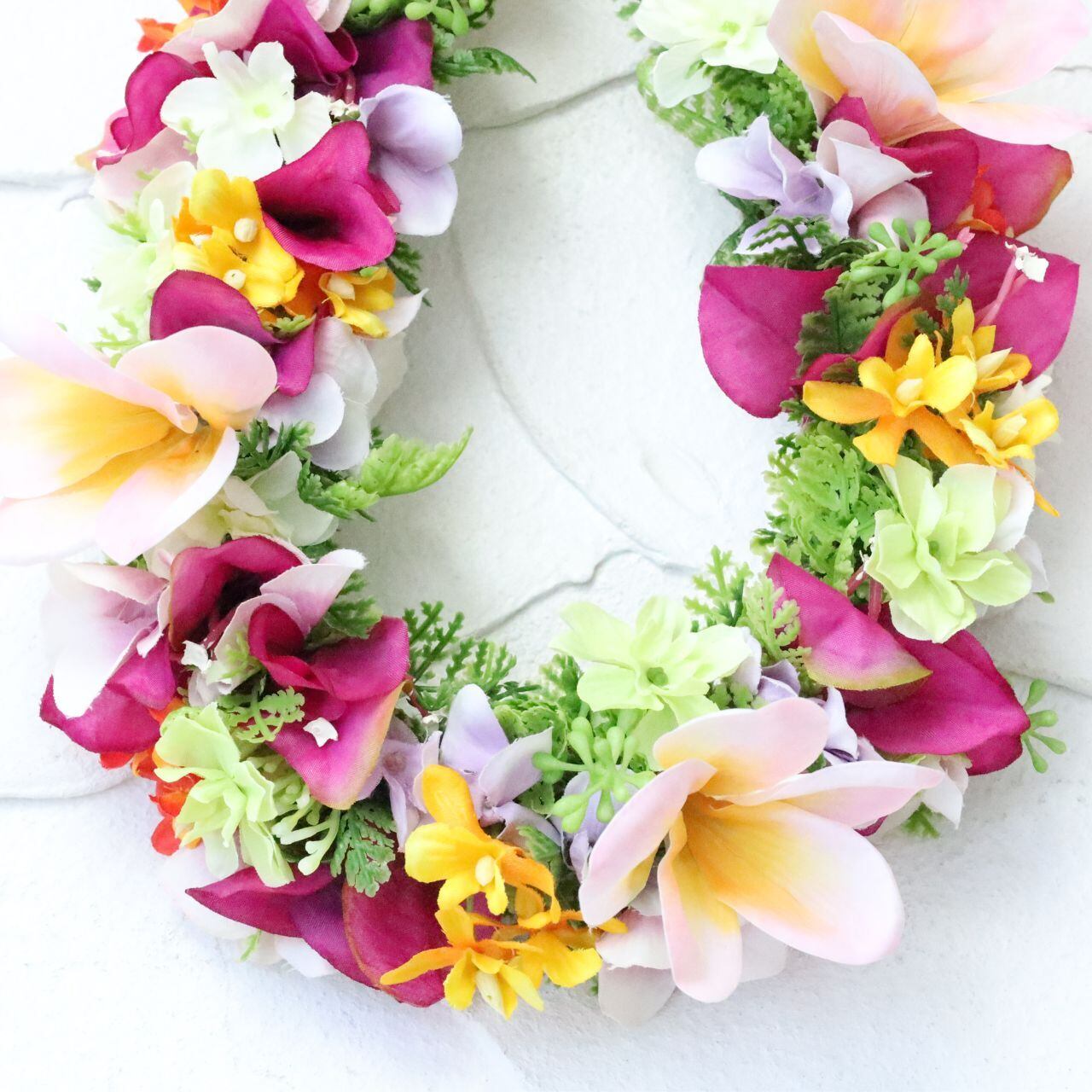 他にはない、ボリューミーで豪華な、ハワイアン造花のレイです。